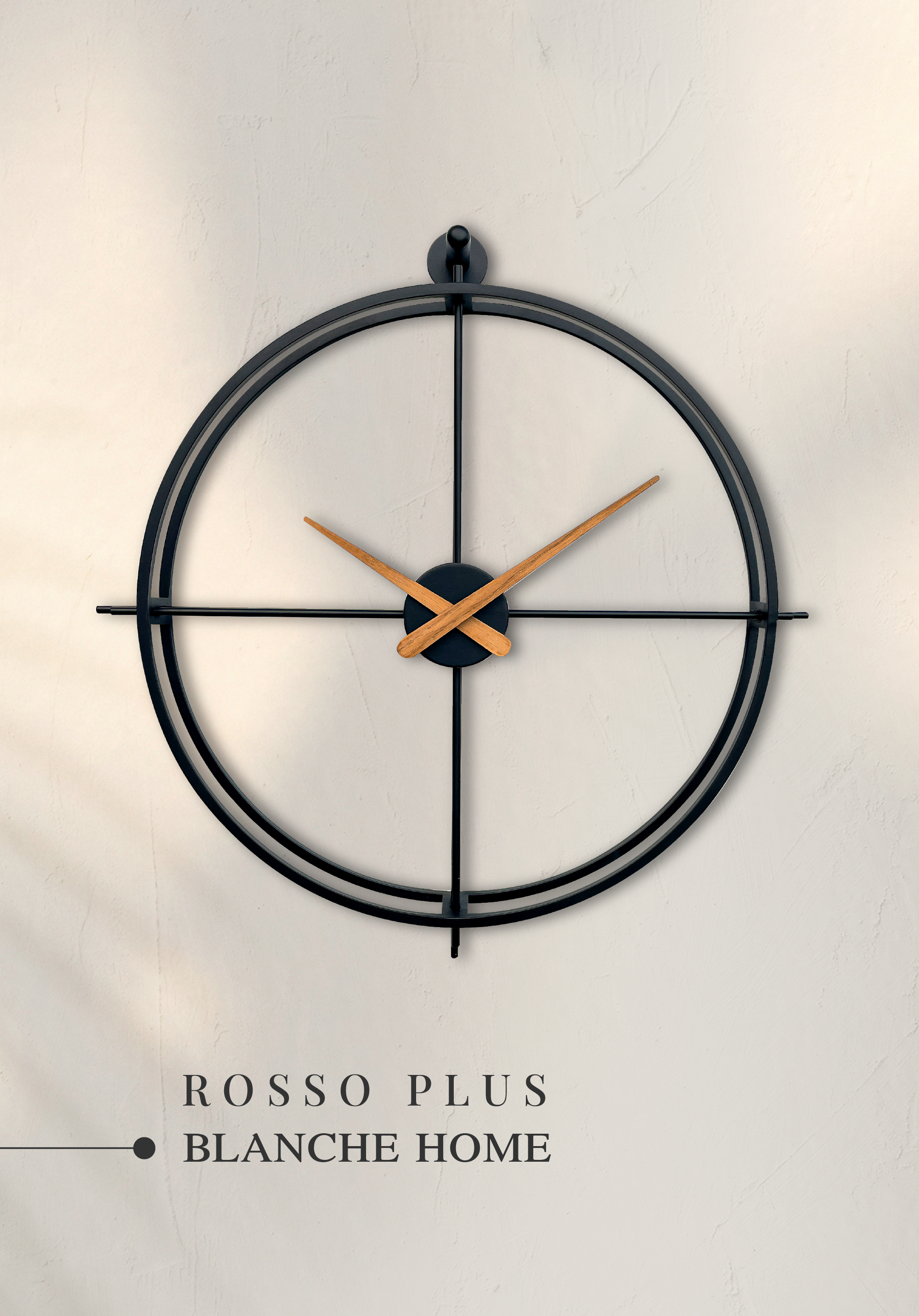 ساعت دیواری فلزی مدرن مدل روسو پلاس عقربه چوبی